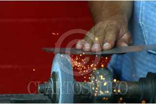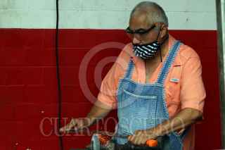 CUERNAVACA, MORELOS, 26MAYO2021.-Un hombre que trabaja como afilador realiza su labor en el mercado Adolfo López Mateos, el más grande de la entidad. FOTO: MARGARITO PÉREZ RETANA /CUARTOSCURO.COM