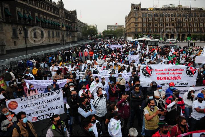 CIUDAD DE MÉXICO, 26MAYO2021.- Esta mañana, cientos de trabajadores de la Confederación Nacional de Industriales de Metales y Reciclado res (CONIMER) se manifestaron en contra de las clausuras ilegales, reformas y conseciones que afectan a los trabajadores del sector y acusan de no dar un voto a Morena ante las persecuciones que sufren dentro de sus empleos. FOTO: DANIEL AUGUSTO /CUARTOSCURO.COM