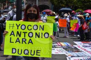 TOLUCA, ESTADO DE MÉXICO, 27MAYO2021.- Integrantes de Haz Valer mi Libertad se manifestaron frente al Tribunal Superior de Justicia del Estado de México en apoyo al abogado Antonio Lara Duque defensor de Derechos Humanos, y rechazaron la orden de arresto girada por el Juez Jorge González Rivera. FOTO: CRISANTA ESPINOSA AGUILAR /CUARTOSCURO.COM