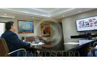 CIUDAD VICTORIA, TAMAULIPAS, 27MAYO2021.- Francisco Javier García Cabeza de Vaca, gobernador del estado de Tamaulipas y quien hasta hace poco contaba con una orden de aprehensión por crimen organizado, sostuvo una reunión vía remota con las y los gobernadores de diversos estados, así como con la secretaria de Gobernación, Olga Sánchez Cordero, de cara a los comicios electorales del próximo 06 de junio. FOTO: TOMADA DE TWITTER/CUARTOSCURO.COM