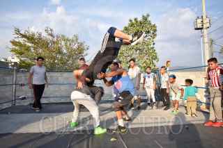 CHILPANCINGO, GUERRERO, 27MAYO2021.- A más de un año, luchadores de Chilpancingo que integran la ‘Promotora Monstruo’ comenzaron a realizar entrenamientos al aire libre y se preparan para realizar su primera función del año, con todas las medidas sanitarias para los asistentes. Los más 15 luchadores que integran este grupo, durante toda la contingencia entrenaron de manera personal, pero indicaron que no es lo mismo porque no pueden practicar rutinas de equipo, ya que solo se hacen ejercicios de manera individual. Rey Nocturno, dijo que “el regresar a practicar con los compañeros es más mejor porque puedes realizar ejercicios que requieran por lo menos una pareja o hasta 3 luchadores más para hacerlos”. Indico que, desde que se anunció el posible anuncio del cambio de semáforo a color verde, sus compañeros lo animaron a armar el ring para poder entrenar y planear una función de regreso. Lo que atrajo la atención de niños que se acercaron a preguntar si podían jugar a ser luchadores, cosa que lo alegro y decido incorporarlos a sus entrenamientos, no sin antes consultar a sus padres sobre si podrían entrenarlos en el arte del pancracio. Ahora han incorporado a los menores a sus entrenamientos. Lo que ha dado pie a crear una pequeña escuela con los menores, incorporándolos a los ejercicios de velocidad, coordinación y resistencia. Kid Dragon dijo que ver a los niños entrenar con ellos es una motivación para los que ya se dedican a este deporte; “verlos querer imitarnos es motivante, aparte nos dicen que cuando sean grandes quieren ser como nosotros y luchar, es un sentimiento bien bonito, es algo que te alienta a seguir haciéndolo”. Este sábado, luego de más de un año de no realizar funciones, realizaran su primera función con medidas sanitarias contra el COVID-19, en el mismo lugar donde practican este deporte, calle 5 de la colonia del PRI, justo a espaldas de la Rectoría de la Universidad Autónoma de Guerrero (UAGro). La funci