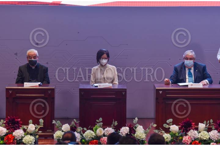 TOLUCA, ESTADO DE MÉXICO, 28MAYO2021.- El Magistrado Ricardo Sodi Cuellar, Presidente del Tribunal Superior de Justicia del Estado de México, Laura Alicia Cano Ruíz Directora Ejecutiva de la Confraternidad Carceleraria de México A. C., Eduardo Verástegui, filántropo y actor, Gregorio Poblano Bata, responsable Diocesano de la Dimensión de Pastoral Penitenciaria de la Arquidiócesis de Toluca, firmaron el Convenio de Concertación para la Reinserción Social de Adolescentes Privados de la Libertad. FOTO: CRISANTA ESPINOSA AGUILAR /CUARTOSCURO.COM