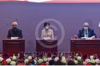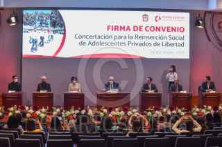 TOLUCA, ESTADO DE MÉXICO, 28MAYO2021.- El Magistrado Ricardo Sodi Cuellar, Presidente del Tribunal Superior de Justicia del Estado de México, Laura Alicia Cano Ruíz Directora Ejecutiva de la Confraternidad Carceleraria de México A. C., Eduardo Verástegui, filántropo y actor, Gregorio Poblano Bata, responsable Diocesano de la Dimensión de Pastoral Penitenciaria de la Arquidiócesis de Toluca, firmaron el Convenio de Concertación para la Reinserción Social de Adolescentes Privados de la Libertad. FOTO: CRISANTA ESPINOSA AGUILAR /CUARTOSCURO.COM