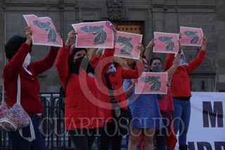 CIUDAD DE MÉXICO, 28MAYO2021.- Mujeres del colectivo Menstruación Digna Mx realizaron una protesta en el Zócalo capitalino para exigir al gobierno federal la promulgación de una ley que retire el impuesto del IVA a los productos de higiene íntima femenina ya que son artículos de primera necesidad para las mujeres y es injusto que haya un impuesto extra. FOTO: GALO CAÑAS/CUARTOSCURO.COM