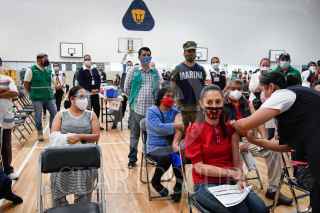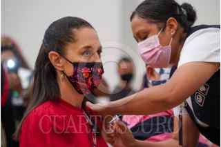 CIUDAD DE MÉXICO, 29OCTUBRE2021.- Claudia Sheinbaum, jefa de gobierno de la capital recibió la primer dosis de la vacuna contra covid-19 "Pfizer-BioNTech" el módulo de vacunación ubicado en Prepa 5 de la UNAM. FOTO: GOBIERNO DE LA CIUDAD DE MÉXICO/CUARTOSCURO.COM