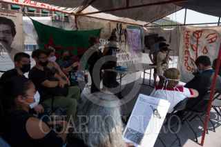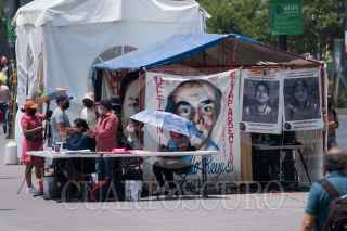 CIUDAD DE MÉXICO, 28MAYO2021.- Como parte de la Semana del Detenido Desaparecido, fecha creada en México en 1981, colectivos como el Frente Nacional de Lucha por el Socialismo y Nadín Reyes Maldonado, coordinadora del Comité de Familiares de Detenidos Desaparecidos Hasta Encontrarlos México e hija de Edmundo Reyes Amaya (detenido desaparecido en 2007), realizaron la jornada cultural en la explanada del Zócalo capitalino para llamar al gobierno federal a exigir justicia y atención a todos los casos de desaparción que existen en el país. Asimismo, llamaron a la sociedad civil a formar parte de las luchas sociales. FOTO: GALO CAÑAS/CUARTOSCURO.COM