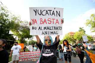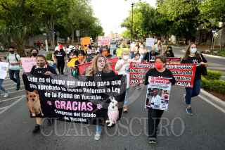 MÉRIDA, YUCATÁN, 29MAYO2021.- Como parte del movimiento nacional "Seres Sintientes" varias personas marcharon para protestar y unirse a la lucha contra el maltrato animal y manifestar la importancia de que el Congreso del Estado aprobara las reformas a la Ley para la Protección de la Fauna y el Código penal para castigar más severamente a quienes cometan actos de crueldad animal. FOTO: FRANCISCO BALDERAS/CUARTOSCURO.COM
