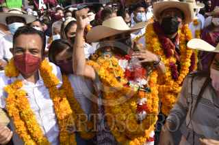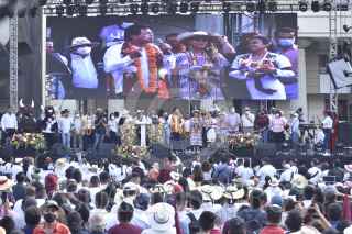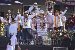 CHILPANCINGO, GUERRERO, 29MAYO2021.- En un evento masivo, político y musical, la candidata de Morena a la gubernatura de Guerrero, Evelyn Salgado Pineda, realizó el cierre de campaña de las regiones Centro y Montaña, en la plaza cívica 'Primer Congreso de Anahuac' en Chilpancingo, donde estuvo acompañada del dirigente nacional de este partido, Mario Delgado Carrillo, su padre Félix Salgado Macedonio, familiares, diputados locales y candidatos a presidentes municipales, diputados locales y federales de los municipios que comprenden estas regiones. Durante su participación, Evelyn Salgado, conocida como 'La Torita', presentó sus propuestas para impulsar los diversos sectores del estado, principalmente seguridad y salud. FOTO: DASSAEV TÉLLEZ ADAME/CUARTOSCURO.COM