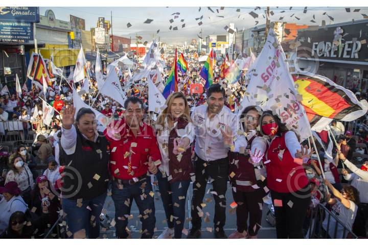 ENSENADA, BAJA CALIFORNIA, 29MAYO2021.- La candidata a la gubernatura de la coalición Juntos Haremos Historia en Baja California, Marina del Pilar Ávila, realizó su cierre de campaña ante cientos de simpatizantes. El evento se realizó en la zona Centro de la ciudad. FOTO: OMAR MARTÍNEZ /CUARTOSCURO.COM