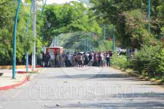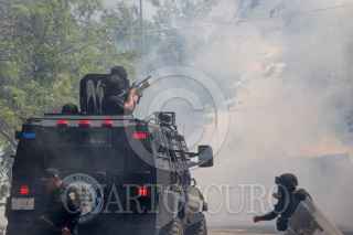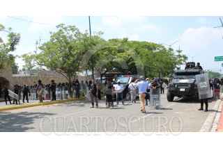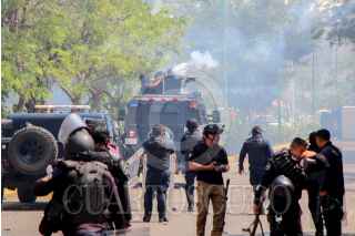 TUXTLA GUTIÉRREZ, CHIAPAS, 31MAY02021.- Policías estatales replegaron a normalistas de la Escuela Normal Rural Mactumactzá, en las inmediaciones de esta institución. Como parte de su jornada de protesta quemaron instalaciones del INE. Los estudiantes se encuentran protestando ya que exigen la liberación de sus compañeros que fueron detenidos desde hace un par de semanas durante un bloqueo. En este momento policías antimotines se mantienen cerca de la escuela y han lanzado varios cartuchos de gas lacrimógeno. FOTO: ARTURO MIJANGOS MORENO/CUARTOSCURO.COM