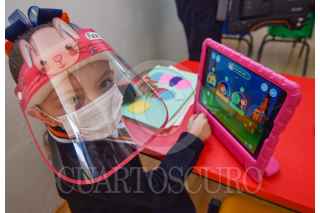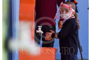 METEPEC, ESTADO DE MÉXICO, 31MAYO2021.- Escuelas Privadas del Estado de México se alistan para el posible regreso a clases en la entidad, a pesar de no haberse realizado algún anuncio sobre la fecha exacta, han iniciado con los diversos protocolos de higiene a seguir para evitar un oso le contagió entre los estudiantes, preescolar, primaria y secundaria se alista desde la llegada del alumno, su estancia en las aulas, sus alimentos y espacios de recreación, en todo momento se tendrá que utilizar cubrebocas, careta, lavado constante de mando, gel antibacterial y también se instalaron arcos sanitizantes. En la entidad mexiquense existen 4500 escuelas particulares, las cuales han tenido que invertir entre 50 y 100 mil pesos para este posible retorno a clases; durante la pandemia cerraron al menos 300 centros educativos. FOTO: CRISANTA ESPINOSA AGUILAR /CUARTOSCURO.COM