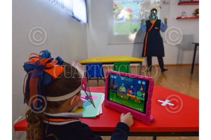 METEPEC, ESTADO DE MÉXICO, 31MAYO2021.- Escuelas Privadas del Estado de México se alistan para el posible regreso a clases en la entidad, a pesar de no haberse realizado algún anuncio sobre la fecha exacta, han iniciado con los diversos protocolos de higiene a seguir para evitar un oso le contagió entre los estudiantes, preescolar, primaria y secundaria se alista desde la llegada del alumno, su estancia en las aulas, sus alimentos y espacios de recreación, en todo momento se tendrá que utilizar cubrebocas, careta, lavado constante de mando, gel antibacterial y también se instalaron arcos sanitizantes. En la entidad mexiquense existen 4500 escuelas particulares, las cuales han tenido que invertir entre 50 y 100 mil pesos para este posible retorno a clases; durante la pandemia cerraron al menos 300 centros educativos. FOTO: CRISANTA ESPINOSA AGUILAR /CUARTOSCURO.COM