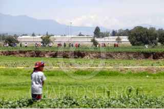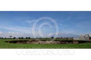 JUAN C. BONILLA, PUEBLA, 31MAYO2021.- Enorme socavón apareció en terrenos de cultivo de Santa María Zacatepec, el cual ha tenido un rápido crecimiento, ya que en 24 horas pasó de tener 5 metros a 60 metro de diámetro, autoridades han evacuado a los habitantes de viviendas cercanas ya que informaron que la oquedad sigue creciendo. FOTO: MIREYA NOVO/CUARTOSCURO.COM