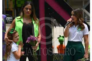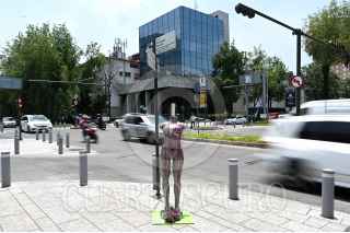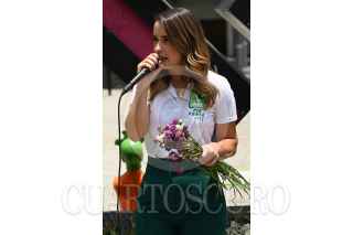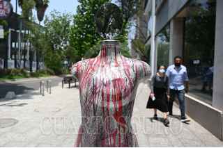 CIUDAD DE MÉXICO, 31MAYO2021.- Pía Mistretta, candidata a diputada local por el Distrito 13 por parte del Partido Verde Ecologista de México en la Ciudad de México, realizó un recorrido por la Av. Masaryk donde presentó una exposición de violencia de género como parte de su cierre de campaña, donde resaltó su intención de generar cambios a favor de las mujeres de esta demarcación. FOTO: DANIEL AUGUSTO /CUARTOSCURO.COM