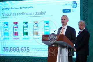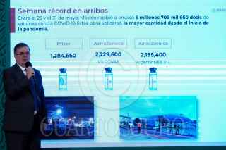 CIUDAD DE MÉXICO, 01JUNIO2021.- Andrés Manuel López Obrador, presidente de México; Jorge Alcocer, secretario de Salud; Hugo López-Gatell, subsecretario de Prevención y Promoción a la Salud; Delfina Gómez, secretaria de Educación, y Luis Cresencio Sandoval, secretario de la Defensa Nacional, encabezaron el informe semanal de “El Pulso de la salud” para exponer la actual situación de la actual pandemia por Covid-19 en nuestro país. FOTO: GALO CAÑAS/CUARTOSCURO.COM
