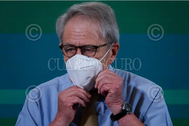 CIUDAD DE MÉXICO, 01JUNIO2021.- Jorge Alcocer, secretario de Salud, fue vacunado con la segunda dosis de la vacuna AstraZeneca contra Covid-19 al termino de la conferencia matutina del presidente Andrés Manuel López Obrador. El secretario invitó a la población a continuar acudiendo a los módulos y no bajar la guardia contra la pandemia. FOTO: GALO CAÑAS/CUARTOSCURO.COM
