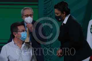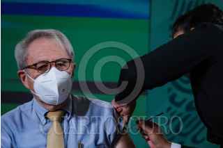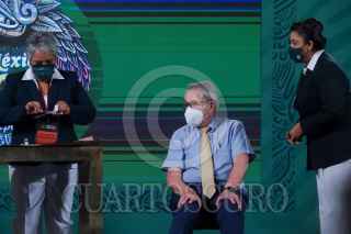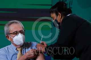 CIUDAD DE MÉXICO, 01JUNIO2021.- Jorge Alcocer, secretario de Salud, fue vacunado con la segunda dosis de la vacuna AstraZeneca contra Covid-19 al termino de la conferencia matutina del presidente Andrés Manuel López Obrador. El secretario invitó a la población a continuar acudiendo a los módulos y no bajar la guardia contra la pandemia. FOTO: GALO CAÑAS/CUARTOSCURO.COM