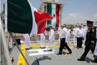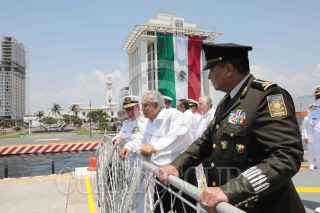 VERACRUZ, VERACRUZ, 01JUNIO2021.- Andrés Manuel López Obrador, Presidente de México, presidió el "Día de la Marina Nacional", en Escuela Náutica Mercante Cap. Alt. Fernando Siliceo y Torres”. Lo acompañaron: Cuitláhuac García Jiménez, Gobernador Constitucional de Veracruz; Luis Cresencio Sandoval González, Secretario de la Defensa Nacional; José Rafael Ojeda Durán, Secretario de Marina; Jorge Arganis Díaz Leal, Secretario de Comunicaciones y Transportes y Efrén Simón Moreno Martínez, Director de la Escuela Náutica Mercante de Veracruz. FOTO: PRESIDENCIA/CUARTOSCURO.COM