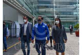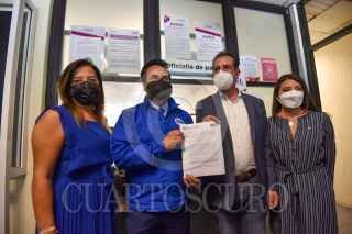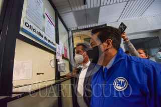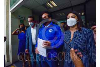 TOLUCA, ESTADO DE MÉXICO, 01JUNIO2021.- Víctor Hugo Sondón representante del PAN ante el INE y Alfonso Álvarez representante del PAN ante el IEEN presentaron en la Oficialia de Partes del Instituto Electoral del Estado de México una denuncia por violencia política de género y discriminación en contra de Karla Fiesco candidata a la alcaldía de Cuatitlán Izcalli por la coalición “Vamos por el Estado de México” por parte de los otros aspirantes a la alcaldía al no permitir su participación vía remota en el debate que se realizaría. FOTO: CRISANTA ESPINOSA AGUILAR /CUARTOSCURO.COM