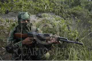 OAXACA 31AGOSTO2006.- Una decena de integrantes del grupo insurgente armando Tendencia Democrática Revolucionaria-Ejército del Pueblo (TDR-EP) realizaron un bloqueo en la carretera Oaxaca-Guelatao para informar la necesidad de establecer un nuevo pacto social de tres puntos: 1.- Desconocer al gobierno espurio que de manera fraudulenta la ultraderecha ha decidido imponer, tal y como lo propone la convocatoria de la Convención Nacional Democrática por el Bien de Todos. 2.- Que contribuya a resolver el grave conflicto oaxaqueño mediante la desaparición de podes como lo exige la Asamblea Popular del Pueblo Oaxaqueño. 3.- Pide la liberación de los presos políticos del país como lo exige el EZLN. La TDR-ER rechaza su participación en el movimiento que realiza la Asamblea Popular del Pueblo Oaxaqueño. Las organizaciones revolucionarias armadas se mantendrán en estado de alerta para respuestas contundentes en caso de que las fuerzas de seguridad nacional pretendan intervenir en el conflicto magisterial. En la tarde ayer una decenas de personas armadas con rifles AK-47 bloquearon por 20 minutos la circulación de automóviles y repartieron información sobre su movimiento armado. Con esta acción los integrantes de la Tendencia Democrática Revolucionaria-Ejército del Pueblo (TDR-EP) recordaron la aparición del Ejercito Popular Revolucionario el 28 de agosto de 1996. Los uniformados no realizaron ningún disparo en señal de paz. FOTO: Germán Romero/CUARTOSCURO.COM