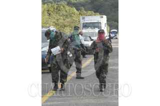OAXACA 31AGOSTO2006.- Una decena de integrantes del grupo insurgente armando Tendencia Democrática Revolucionaria-Ejército del Pueblo (TDR-EP) realizaron un bloqueo en la carretera Oaxaca-Guelatao para informar la necesidad de establecer un nuevo pacto social de tres puntos: 1.- Desconocer al gobierno espurio que de manera fraudulenta la ultraderecha ha decidido imponer, tal y como lo propone la convocatoria de la Convención Nacional Democrática por el Bien de Todos. 2.- Que contribuya a resolver el grave conflicto oaxaqueño mediante la desaparición de podes como lo exige la Asamblea Popular del Pueblo Oaxaqueño. 3.- Pide la liberación de los presos políticos del país como lo exige el EZLN. La TDR-ER rechaza su participación en el movimiento que realiza la Asamblea Popular del Pueblo Oaxaqueño. Las organizaciones revolucionarias armadas se mantendrán en estado de alerta para respuestas contundentes en caso de que las fuerzas de seguridad nacional pretendan intervenir en el conflicto magisterial. En la tarde ayer una decenas de personas armadas con rifles AK-47 bloquearon por 20 minutos la circulación de automóviles y repartieron información sobre su movimiento armado. Con esta acción los integrantes de la Tendencia Democrática Revolucionaria-Ejército del Pueblo (TDR-EP) recordaron la aparición del Ejercito Popular Revolucionario el 28 de agosto de 1996. Los uniformados no realizaron ningún disparo en señal de paz. FOTO: Germán Romero/CUARTOSCURO.COM