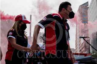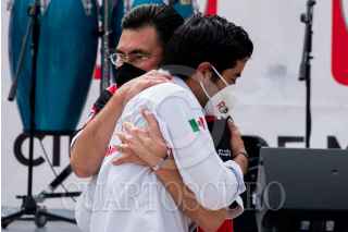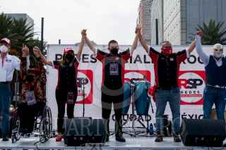 CIUDAD DE MÉXICO, 02JUNIO2021.- El partido Redes Sociales Progresistas (RSP) realizó su cierre de campaña en la capital del país de cara a los comicios electorales de 06 de junio. El evento estuvo encabezado por Fernando González, dirigente nacional del partido, y Pedro Pablo de Antuñano, dirigente en la Ciudad de México, quienes firmaron 3 acuerdos respecto a personas de la tercera edad, personas con discapacidad y movilidad. Asimismo, llamaron a las personas a salir y expresar su opinión en las urnas. FOTO: GALO CAÑAS/CUARTOSCURO.COM
