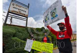 LERMA, ESTADO DE MÉXICO, 02JUNIO2021.- Familiares y amigos de Fernando Ortiz, joven maestro asesinado el 19 de febrero de 2020 en un asalto a un autobús en Paseo Tollocan, se presentaron a los Juzgados de Lerma en donde se llevó a cabo la audición de dos presuntos implicados. FOTO: CRISANTA ESPINOSA AGUILAR /CUARTOSCURO.COM