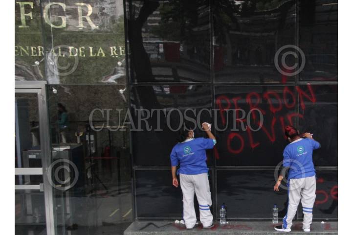 CIUDAD DE MÉXICO 02JUNIO2021.- Aspectos de las instalaciones de la FGJ después de que estudiantes de las escuelas normales Raúl Isidro Burgos, del estado de Guerrero y de Mactumatzá de Chiapas se manifestaran durante la mañana de este miércoles. Los inconformes exigían la liberación de 16 de sus compañeros arrestados el pasado martes. FOTO: ROGELIO MORALES /CUARTOSCURO.COM