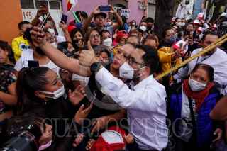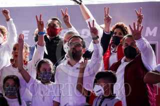 CIUDAD DE MÉXICO, 02JUNIO2021.- Víctor Hugo Romo, candidato a la reelección como alcalde de Miguel Hidalgo, realizó su cierre de campaña en calles de la colonia Pensil. El abanderado morenista acudió en compañía de sus hijas, así como de Javier Hidalgo, candidato a diputado federal por el Distrito X, Citlali Hernández, secretaria general de Morena, y Jesús Sesma, candidato a Diputado Local por el Distrito 5 por el Partido Verde Ecologista de México (PVEM). FOTO: GALO CAÑAS/CUARTOSCURO.COM