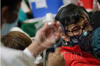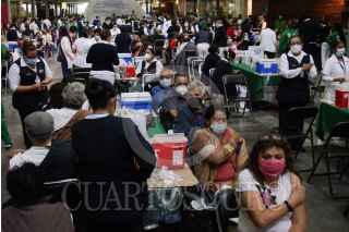 CIUDAD DE MÉXICO, 03JUNIO2021.- Adultos mayores de 60 años asisten a la Biblioteca Vasconcelos para ser inoculados con la segunda dosis de la vacuna AstraZeneca contra covid-19. FOTO:MARIO JASSO/CUARTOSCURO.COM