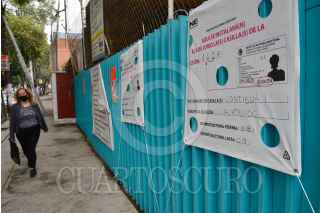 CIUDAD DE MÉXICO, 03JUNIO2021.- Pancartas del Instituto Nacional Electoral (INE) señalan el lugar donde será instalada una casilla para votar en las próximas elecciones del 6 de junio. De acuerdo al Instituto Electoral de la Ciudad de México (IECM) para esta jornada electoral se instalarán más de 13 mil casillas. FOTO: MARIO JASSO/CUARTOSCURO.COM