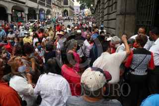 CUERNAVACA, MORELOS, 03JUNIO2021.- Un grupo numeroso de maestros jubilados se manifestó esta mañana bloqueando varias calles del centro de la capital, exigen el pago de una prima de antigüedad y otros beneficios económicos. Una comisión ingreso al palacio de gobierno de Morelos para reunirse y solucionar su problemática. FOTO: MARGARITO PÉREZ RETANA /CUARTOSCURO.COM