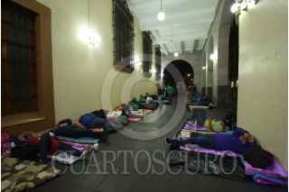 XALAPA, VERACRUZ, 03JUNIO2021.- Ante la indiferencia de las autoridades decenas de trabajadores que laboran en la "Alcoholera de Orizaba" se plantaron en los arcos del Palacio de Gobierno de Verracruz, en rechazó de que esta empresa cierre, le piden al gobierno intervenga para rescatarla y así no perder sus empleos. Los inconformes iniciaron su manifestación desde la mañana del día de ayer y ante la nula respuesta de sus demandas decidieron pernoctar en el sitio. FOTO: YERANIA ROLÓN/CUARTOSCURO.COM