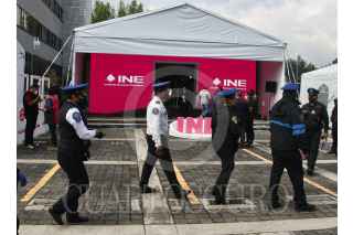 CIUDAD DE MÉXICO 03JUNIO2021.- El Instituto Nacional Electoral comenzó comenzó las actividades previas a las votaciones del próximo 6 de junio, esto en las inmediaciones del instituto. Cabe destacar que las entradas y salidas permanecen resguardadas por policías capitalinos, esto como medida preventiva ante posibles manifestaciones por diversos grupos. FOTO: ROGELIO MORALES /CUARTOSCURO.COM