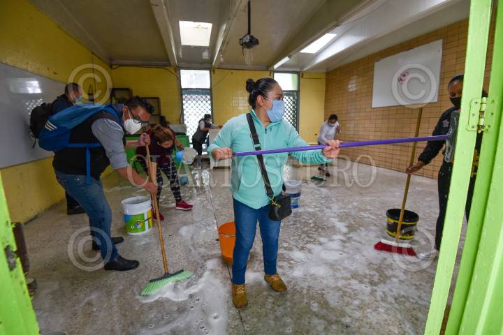 TOLUCA, ESTADO DE MÉXICO, 04JUNIO2021.- Padres de familia realizan la limpieza de al menos 3500 escuelas de los subsistemas de Educación básica estatal, federalizado, educación media y educación superior en el Estado de México para este 6 de junio, ya que en ellas se instalarán casillas electorales y de esta forma garantizar un espacio limpio para que se lleve a cabo el proceso electoral. En la siguiente semana se llevará a cabo la limpieza de los centros escolares en su totalidad para el regreso a clases anunciando por el gobernador Alfredo del Mazo para el 14 de junio, que será de manera voluntaria, después de permanecer más de un año sin clases presenciales debido a la pandemia por COVID-19. FOTO: CRISANTA ESPINOSA AGUILAR /CUARTOSCURO.COM