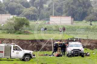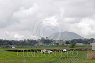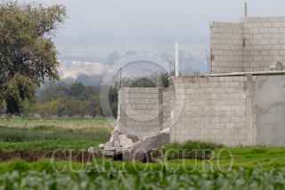 JUAN C. BONILLA, PUEBLA, 04JUNIO2021.- Elementos de Protección Civil Estatal trabajan en el área del socavón de Santa María Zacatepec, donde parte de la casa adjunta cayó al agujero la madrugada de hoy debido a que los deslaves continúan. Hasta el momento, se ha registrado que el hundimiento tiene un diámetro de 97 por 83 metros y aproximadamente 15 metros de profundidad. FOTO: MIREYA NOVO/CUARTOSCURO.COM