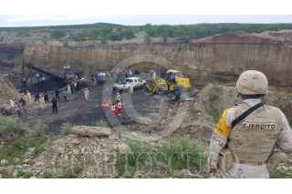 MÚZQUIZ, COAHUILA, 05JUNIO2021.- Elementos de la Guardia Nacional, la Secretaría de la Defensa Nacional (Sedena), participan en las labores de rescate de los trabajadores que se encuentran atrapados tras el colapso en una mina de la comunidad de Rancherías. FOTO: SEDENA/CUARTOSCURO.COM
