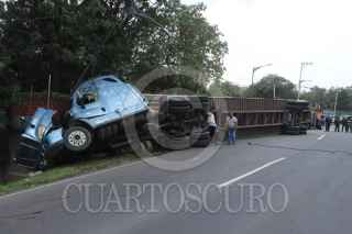 TOLUCA, ESTADO DE MÉXICO, 05JUNIO2021.- Un tráiler cargado con cerveza volcó en el kilómetro 19 de la carretera México Toluca. FOTO: ARMANDO MONROY/CUARTOSCURO.COM