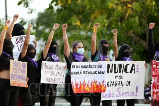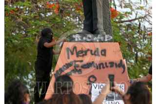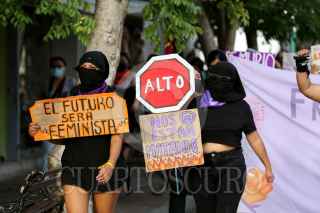 MÉRIDA, YUCATÁN, 05JUNIO2021.- Un día antes de la jornada electoral en Yucatán, decenas de feministas protestaron para exigir a los candidatos que resulten ganadores que generen políticas públicas e iniciativas de ley que erradiquen la violencia de género contra las mujeres. FOTO: FRANCISCO BALDERAS/CUARTOSCURO.COM