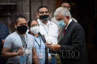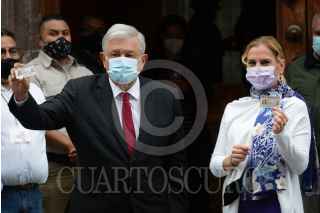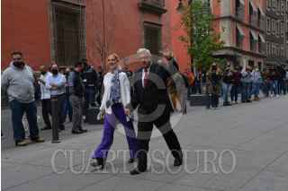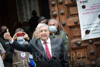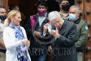 CIUDAD DE MÉXICO, 06JUNIO2021.- Andrés Manuel López Obrador, presidente de México, en compañía de su esposa Beatriz Gutiérrez Müller, emitió su voto en la casilla electoral instalada en el Museo de Arte de la Secretaría de Hacienda y Crédito Público. FOTO: MARIO JASSO/CUARTOSCURO.COM