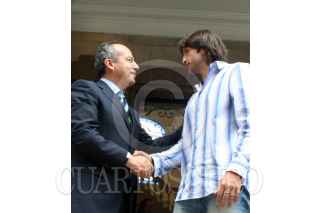 MÉXIC,O D.F. 01SEPTIEMBRE2006.- El futbolista Francisco "Kikin" Fonseca visitó al candidato panista a la Presidencia de la República, Felipe Calderón, antes de su partida al futbol de Portugal. FOTO: Alfredo Guerrero/CUARTOSCURO.COM