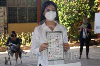 TEPIC, NAYARIT, 06JUNIO2021.- Geraldine Ponce, candidata a la alcaldía de Tepic, emitió su voto en la casilla 921 básica, ubicada en la colonia Fovissste, recalcó que aceptara el resultado la autoridad electoral. FOTO: ÁNGEL IBARRA/CUARTOSCURO.COM