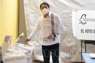 CIUDAD DE MÉXICO, 06JUNIO2021.- Mario Delgado, dirigente nacional de Morena, emitió su voto en la casilla electoral número 1838 de la alcaldía Iztacalco. FOTO: MARIO JASSO/CUARTOSCURO.COM