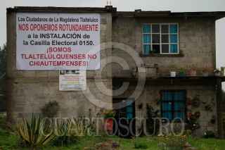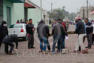 TLAXCALA, TLAXCALA, 06JUNIO2021.- Habitantes de la comunidad de Tetela impidieron que se instalará la casilla 0150, cerrando calles previas a la casilla para evitar que los funcionarios instalarán las urnas. Los conflictos territoriales que existen entre el municipio de Chiautempan y la Magdalena Tlaltelulco han propiciado que los ciudadanos están inconformes con respecto al municipio a votar. FOTO: JOAQUÍN SANLUIS/CUARTOSCURO.COM