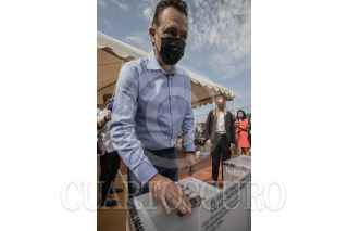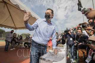 QUERÉTARO, QUERÉTARO, 06JUNIO2021.- El candidato Mauricio Kuri González, candidato del PAN a la gubernatura acudió a emitir su voto esta mañana acompañado de su familia. FOTO: DEMIÁN CHÁVEZ/CUARTOSCURO.COM