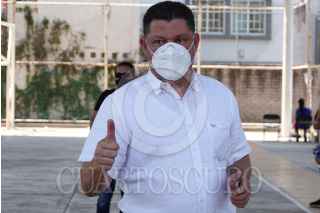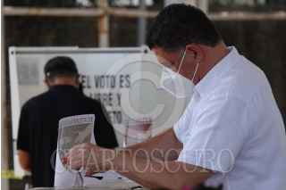MANZANILLO, COLIMA, 06JUNIO2021.- Virgilio Mendoza Amezcua, candidato a la gubernatura de Colima por el Partido Verde Ecologista de México, emitió su voto en la casilla ubicada en el Parque Metropolitano de Manzanillo, Colima FOTO: GALO CAÑAS/CUARTOSCURO.COM