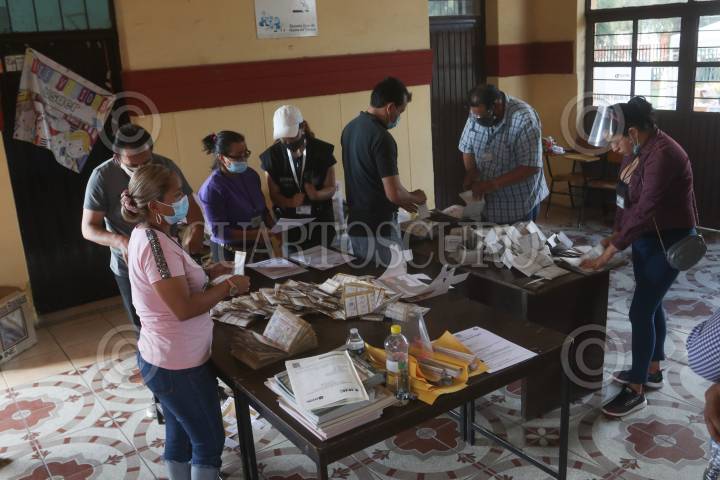 SAN LUIS POTOSÍ, SAN LUIS POTOSÍ, 06JUNIO2021.- Funcionarios y presidentes de casillas, observadores y responsables del INE Y CEEPAC, cerraron la casilla electoral "Centro Escolar P. Arriaga" a las 18 horas, en la que contaron los votos de los ciudadanos para las candidaturas de Gubernatura, Ayuntamiento, Diputados Federales y Diputados Locales. El conteo de votos de esta casilla fue ubicada en el Barrio de Tlaxcala, al norte de esta capital. FOTO: GRACIELA LÓPEZ /CUARTOSCURO.COM