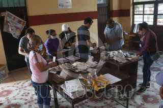 SAN LUIS POTOSÍ, SAN LUIS POTOSÍ, 06JUNIO2021.- Funcionarios y presidentes de casillas, observadores y responsables del INE Y CEEPAC, cerraron la casilla electoral "Centro Escolar P. Arriaga" a las 18 horas, en la que contaron los votos de los ciudadanos para las candidaturas de Gubernatura, Ayuntamiento, Diputados Federales y Diputados Locales. El conteo de votos de esta casilla fue ubicada en el Barrio de Tlaxcala, al norte de esta capital. FOTO: GRACIELA LÓPEZ /CUARTOSCURO.COM