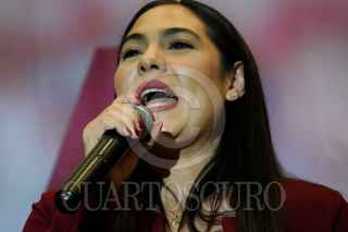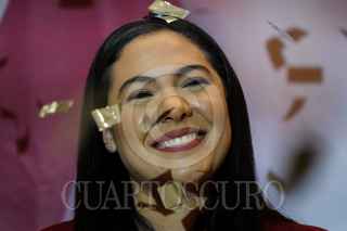 COLIMA, COLIMA, 06JUNIO2021.- Indira Vizcaíno Silva, candidata de la alianza Morena-Nueva Alianza, ofreció conferencia de prensa en compañía de su familia y los dirigentes estatales de ambos partidos para anunciar que se encuentra arriba en las encuestas de salida y con ello nombrarse ganadora de las elecciones por la gubernatura del estado. FOTO: GALO CAÑAS/CUARTOSCURO.COM