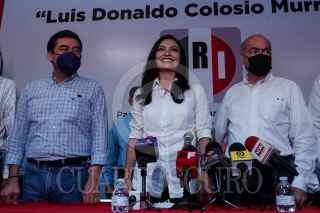 COLIMA, COLIMA, 06JUNIO2021.- Mely Romero Celis, candidata a la gubernatura de Colima por la coalición PRI-PAN-PRD, ofreció conferencia para anunciar que las encuestas de salida mostraban la ventaja sobre sus adversarios. FOTO: GALO CAÑAS/CUARTOSCURO.COM